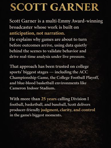 Taught by day. Coached 1,500+ games. Called prime-time broadcasts for ESPN+, Learfield, and top-tier college programs at night.